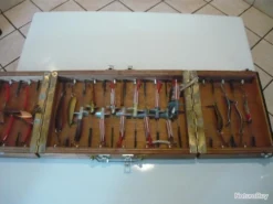 coffret de 21 grosses cuillers et devons pour les saumons de l allier annees 60-70 environ en tbe