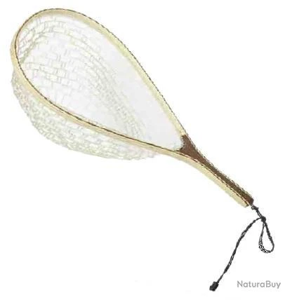 Raquette bois filet rubber (silicone) pour éviter de blesser le poisson.