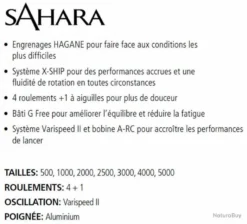 Caractéristiques du moulinet spinning shimano Sahara 1000 FI: